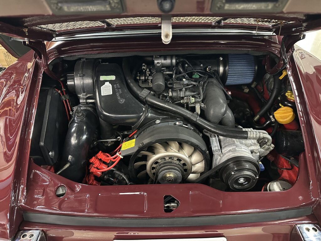 RSRフェンダー、Traum18インチ(9.5J+11J)、前後ナローバンパー加工取付、RSRマフラー、3.8Lチューンドエンジン、MOTECフルマネージメント、オリジナルLEDヘッドライト…などなど、当社の964ナロールック製作メニューの“全部盛り”仕様です。