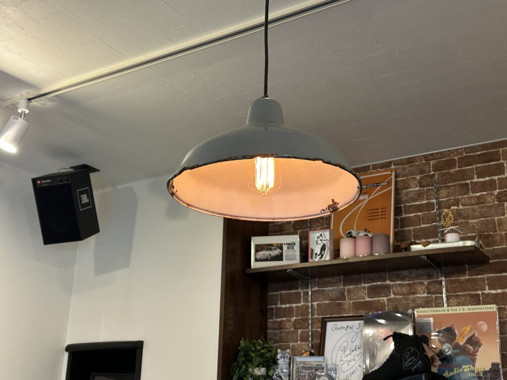 特に中央のレトロな電球はリプロではなく1950年代頃の当時モノで、無骨でストレートな存在感があって空間全体を引き締めてくれています。
