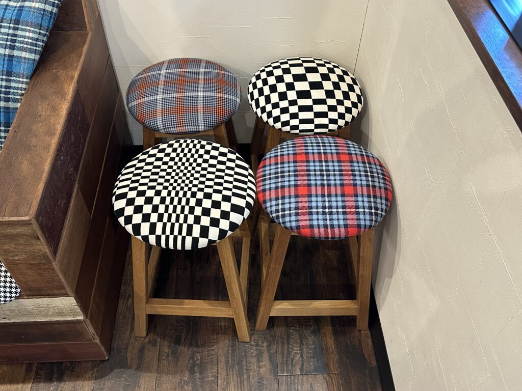 座面にはポルシェ純正のペピタ柄を使用し、クッションや腰掛部分にも実際にポルシェのシート表皮として使われる生地を採用しています。