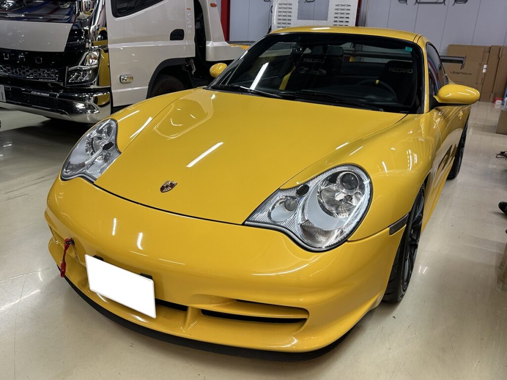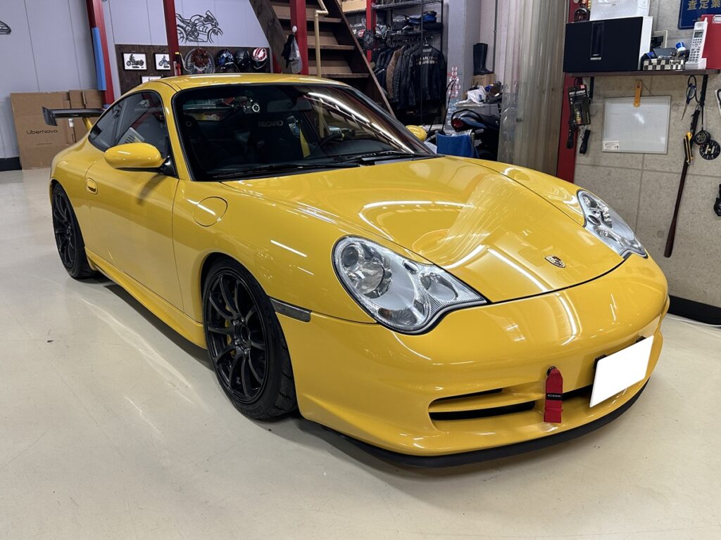 以前、常連のN様に996.2GT2をご購入いただいた際に、スピードイエローの996.2GT3を下取りさせていただきました。
